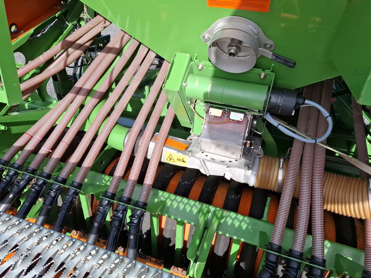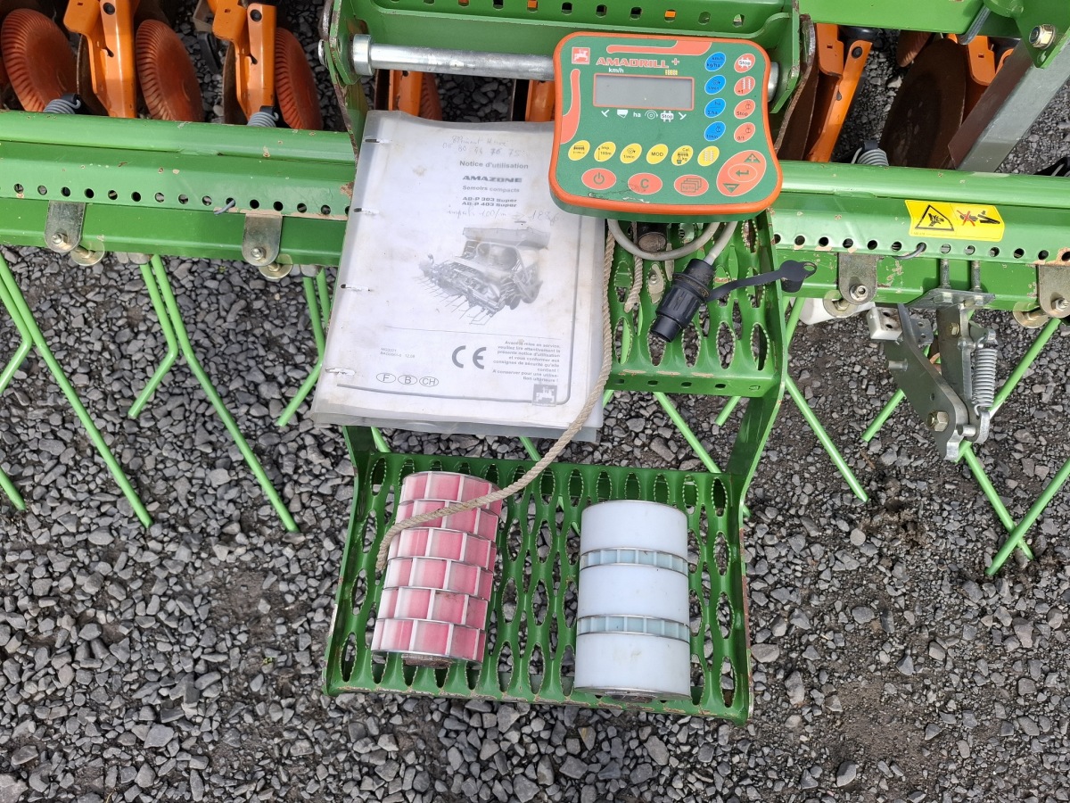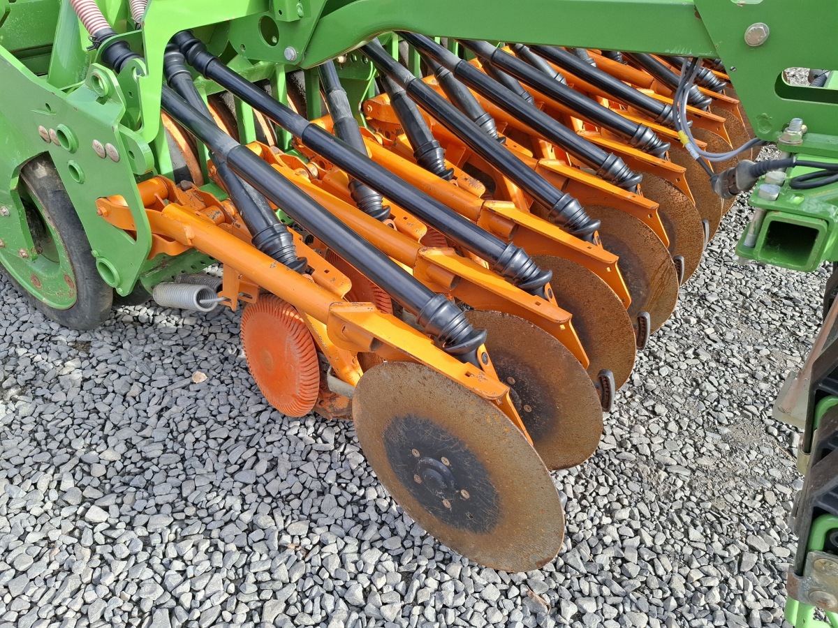 Siewnik pneumatyczny AMAZONE AD-P 303 SUPER, 2012 rok, sterownik AMADRILL+, 24 redlice talerzowe RoTec, brona zagarniająca z nowymi pazurkami, docisk redlic hydrauliczny, dmuchawa hydrauliczna, silnik dawkujący zboże elektryczny, 3 wałki dozujące zboże, wanna do próby kręconej, plandeka, pełne oświetlenie drogowe, skrzynia 1500 litrów zasypu.