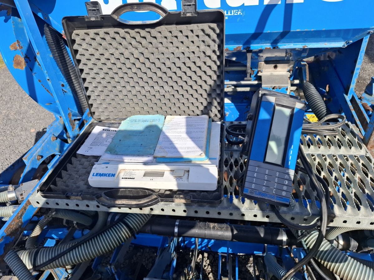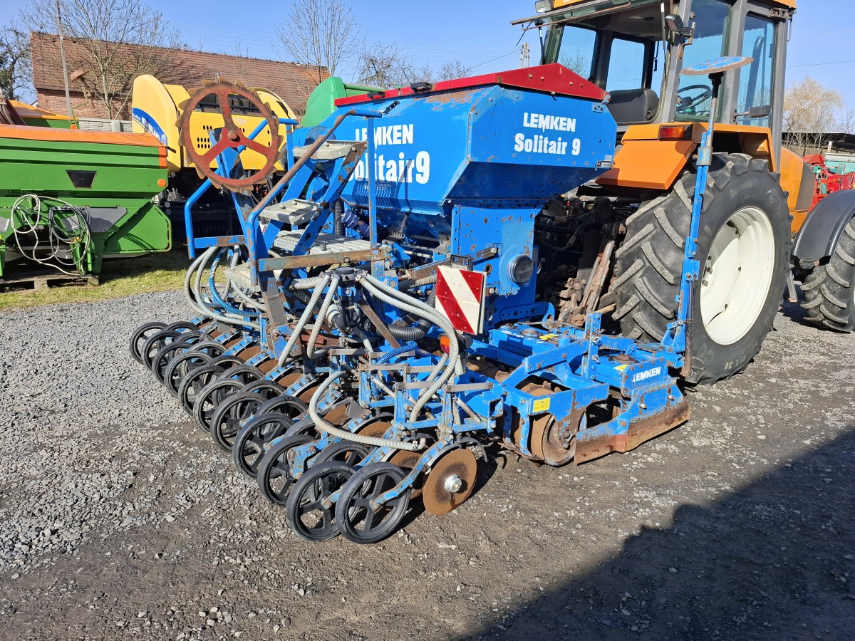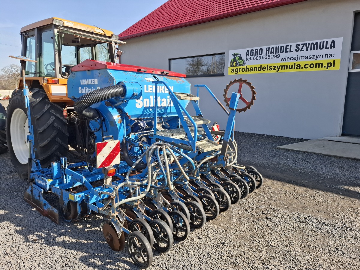 Siewnik pneumatyczny LEMKEN SOLITAIR 9/300, sterownik LEMKEN LH AGRO 5000, 20 redlic talerzowych, kółka zagniatające, dmuchawa hydrauliczna, silnik dawkujący zboże elektryczny,