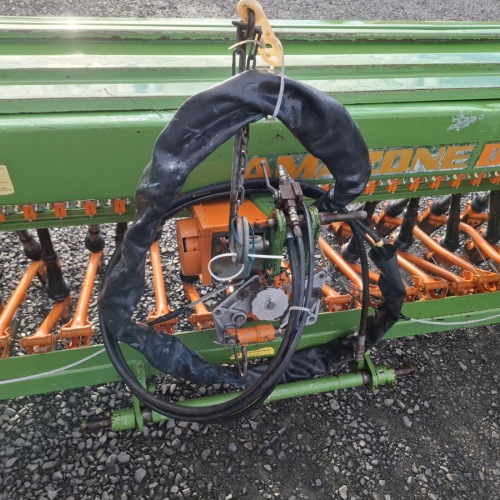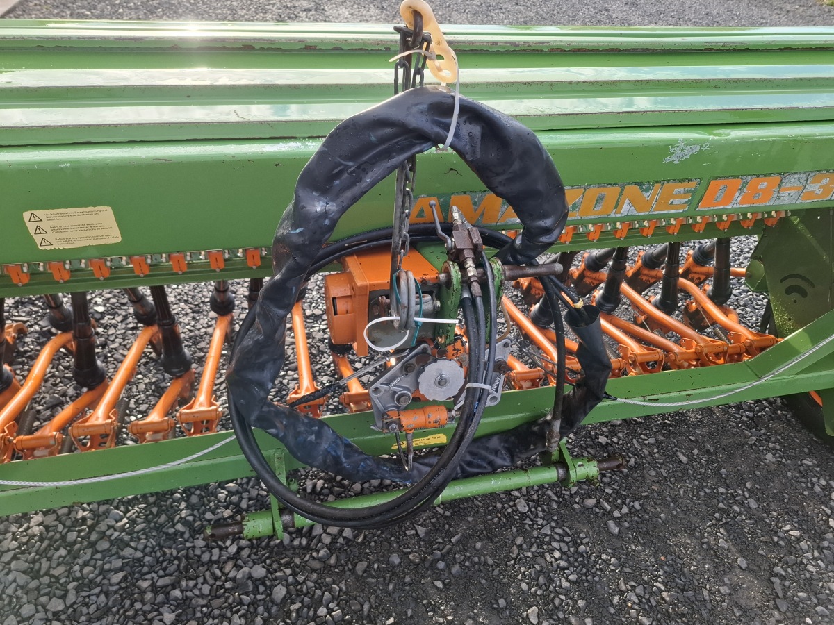 Siewnik zbożowy AMAZONE D8 30 SUPER, 25 lejków, ścieżki powschodowe, znaczniki uruchamiane hydraulicznie, centralny hydrauliczny docisk radlic, przekładnia z trybami do redukcji ilości wysiewu, hydrauliczna zmiana ilości wysiewu, wysiew drobnych nasion, pojemniki i korba do próby kręconej, zaczep wahliwy, wskaźnik ilości ziarna, licznik hektarów, brona tylna z niezapychającymi się zębami