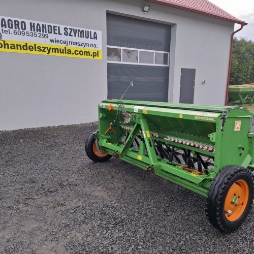 Siewnik zbożowy AMAZONE D9 30 SPECIAL, 2004r, 21 lejków (możliwość dołożenia za dopłatą), ścieżki powschodowe, centralny hydrauliczny docisk radlic, przekładnia z trybami do redukcji ilości wysiewu, wysiew drobnych nasion, pojemniki i korba do próby kręconej, wskaźnik ilości ziarna, licznik hektarów Amaco, brona tylna z niezapychającymi się zębami (zęby do wymiany) i podestem