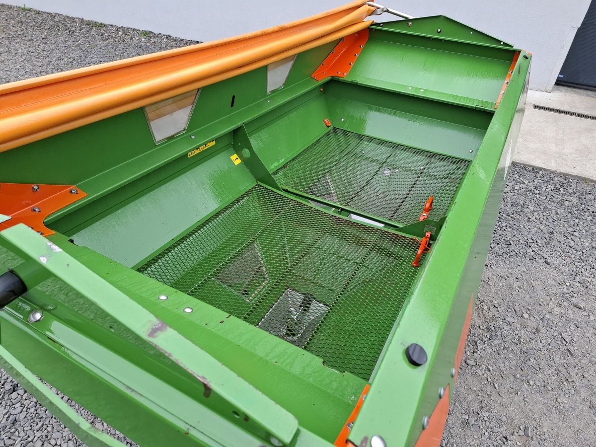 Rozsiewacz AMAZONE ZAM 2200, 2006r, 2200 litrów, SBS – Soft Ballistic System, LIMITER do wysiewu granicznego, plandeka, nierdzewne talerze z regulowanymi łopatkami 10-28m ale możemy założyć każde inne wg potrzeby, możliwość otwierania i zamykania komór osobno, wałek przekaźnika, oryginalne bolce, sita, światła. Sprawny, działający