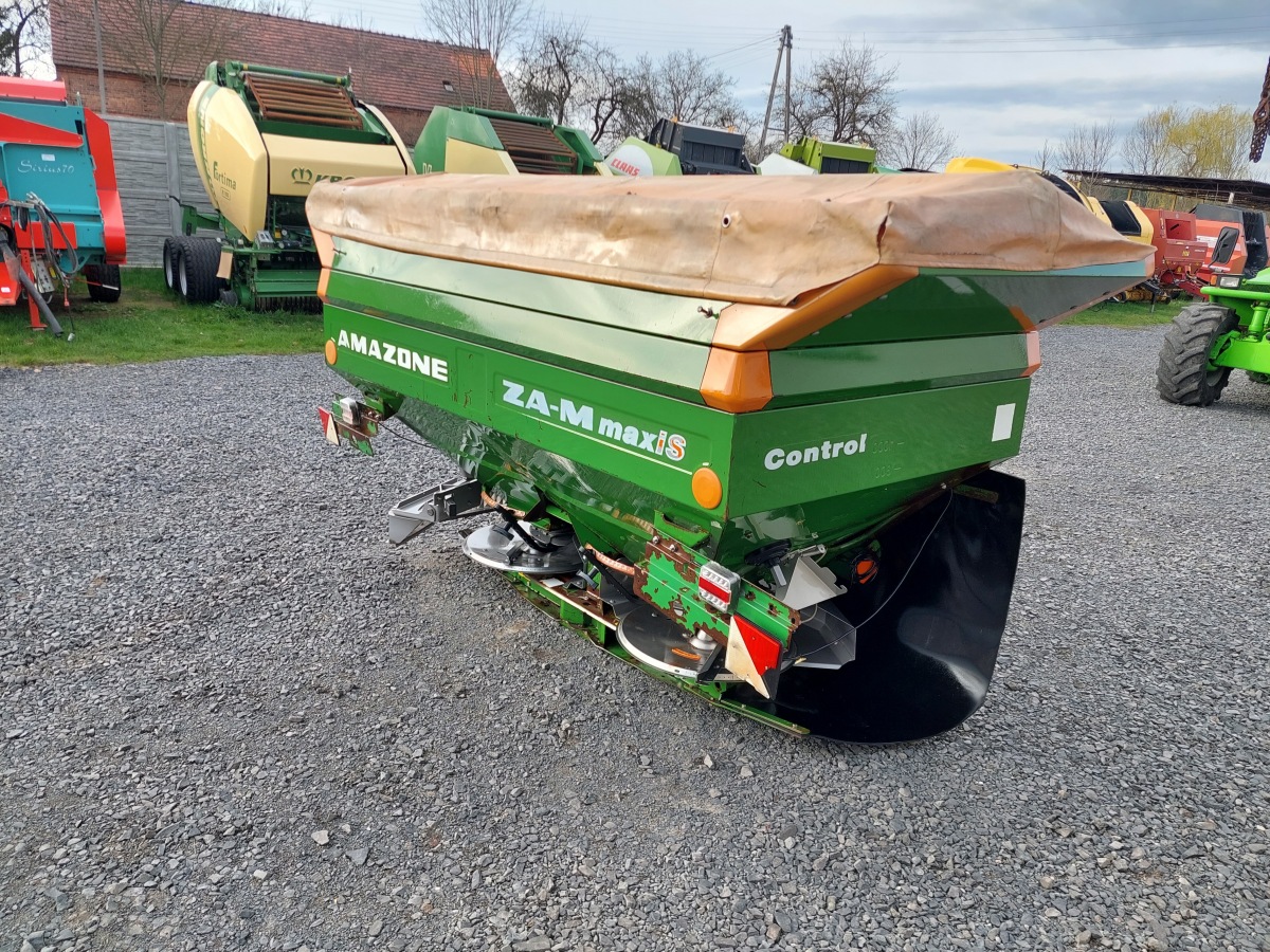 Rozsiewacz nawozów AMAZONE ZAM MAXIS CONTROL 3000, 3000 litrów, 2001 r, komputer AMADOS III, plandeka, LIMITER do wysiewu granicznego, nierdzewne talerze od 10 do 36 m (do wyboru), możliwością otwierania i zamykania komór osobno, oryginalne bolce, wałek przekaźnikia, sita, oświetlenie, osłony przeciwbłotne. Sprawny, działający