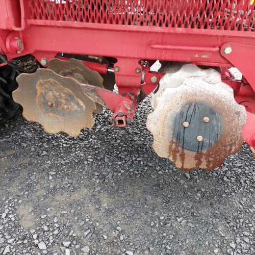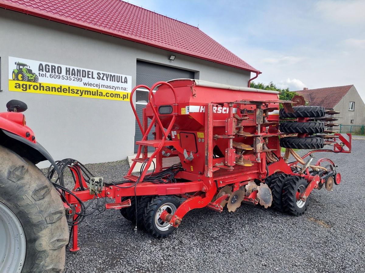 Siewnik zbożowy pneumatyczny HORSCH PRONTO 4 DC, 2004 r, 28 redlic talerzowych, szerokość wysiewu 4 m, zbiornik na materiał siewny – 2800 l, dwa rzędy talerzy uprawowych DiscSystem hydr. regulowane, radar, hydrauliczny napęd turbiny, podajnik zboża napędzany elektrycznie, znaczniki przedwschodowe, znaczniki, ścieżki, zestaw klipsów do ustawiania głębokości, rolki wysiewające, instrukcja od siewnika i komputera.