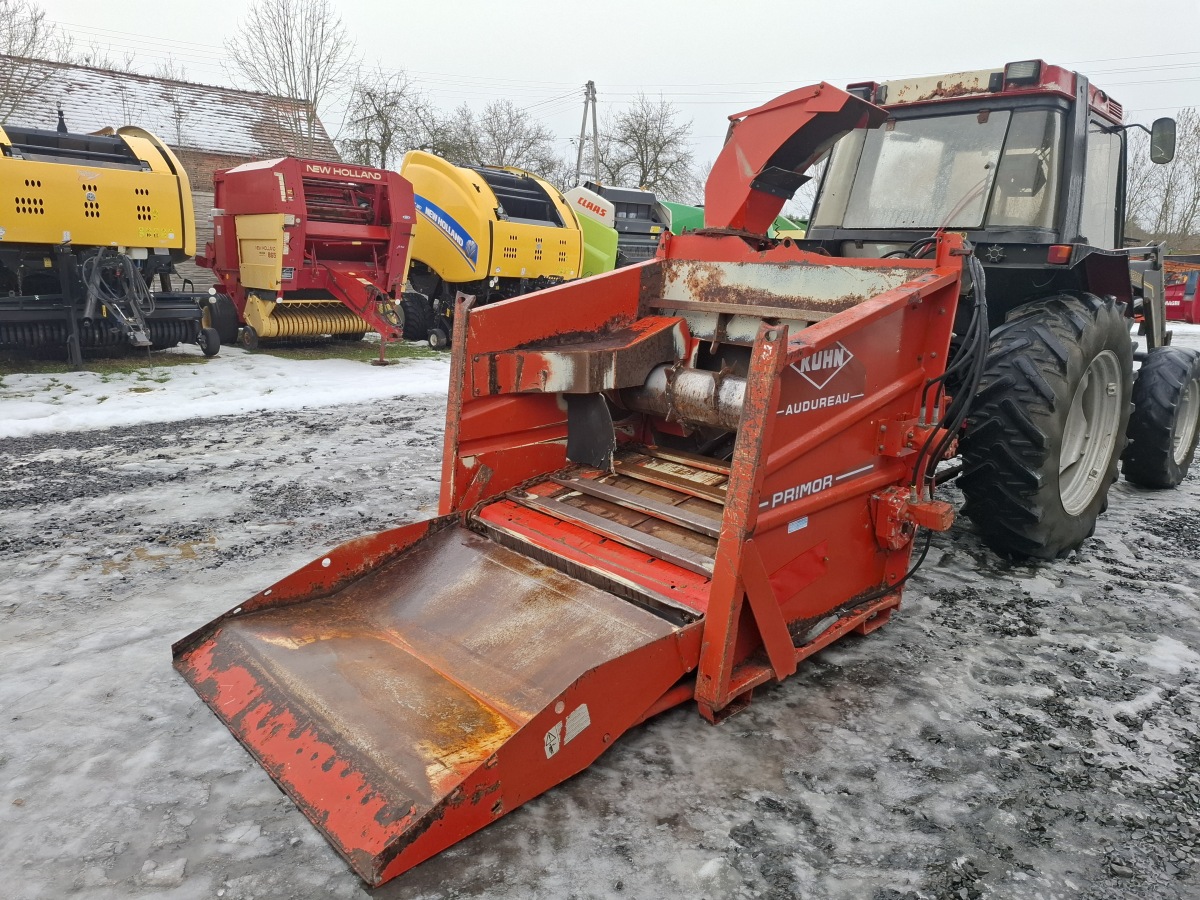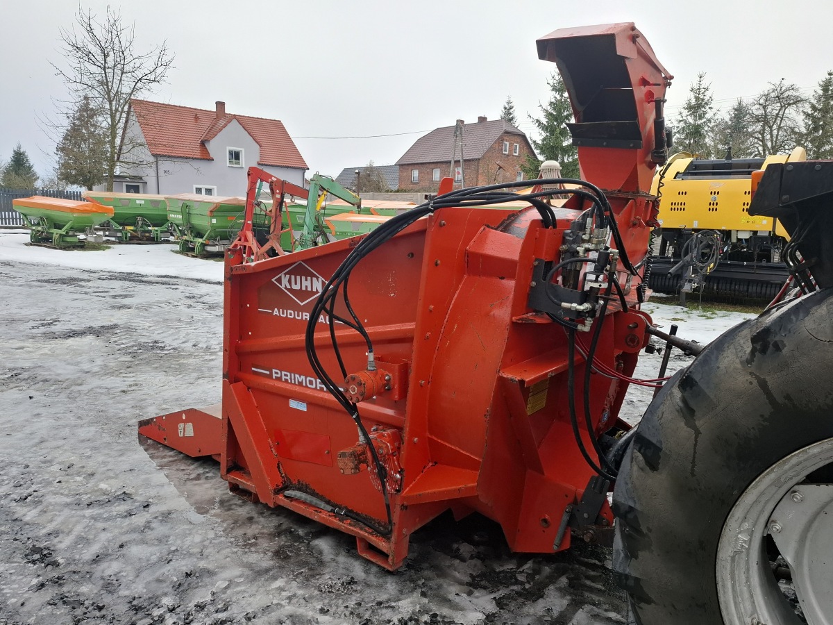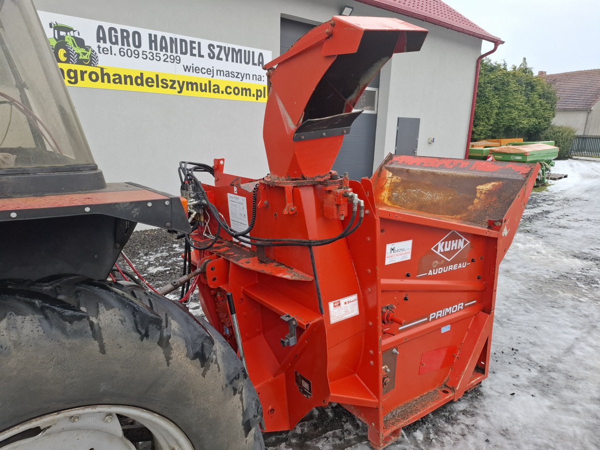 ŚCIELARKA zawieszana KUHN PRIMOR, 2 m3, 1999 r, ścielarka do słomy, może też służyć do podawania karmy dla bydła, bardzo uniwersalne maszyna. Może być ładowana od góry albo od tyłu. rura wysypowa OBROTOWA regulowana, Posiada wał- frez do rozdrabniania BALOTÓW SIANOKISZONKI. Służy do ścielenia słomą na ok 12m. Sterowanie z kabiny ciągnika. Wałek przekaźnika ze sprzęgłem. Kompletna sprawna i działająca maszyna.
