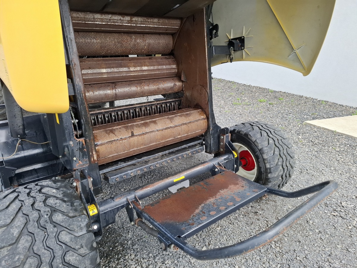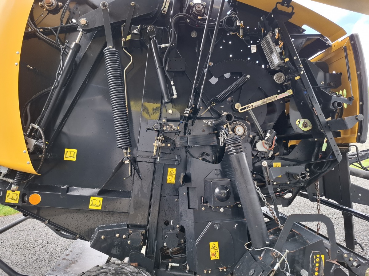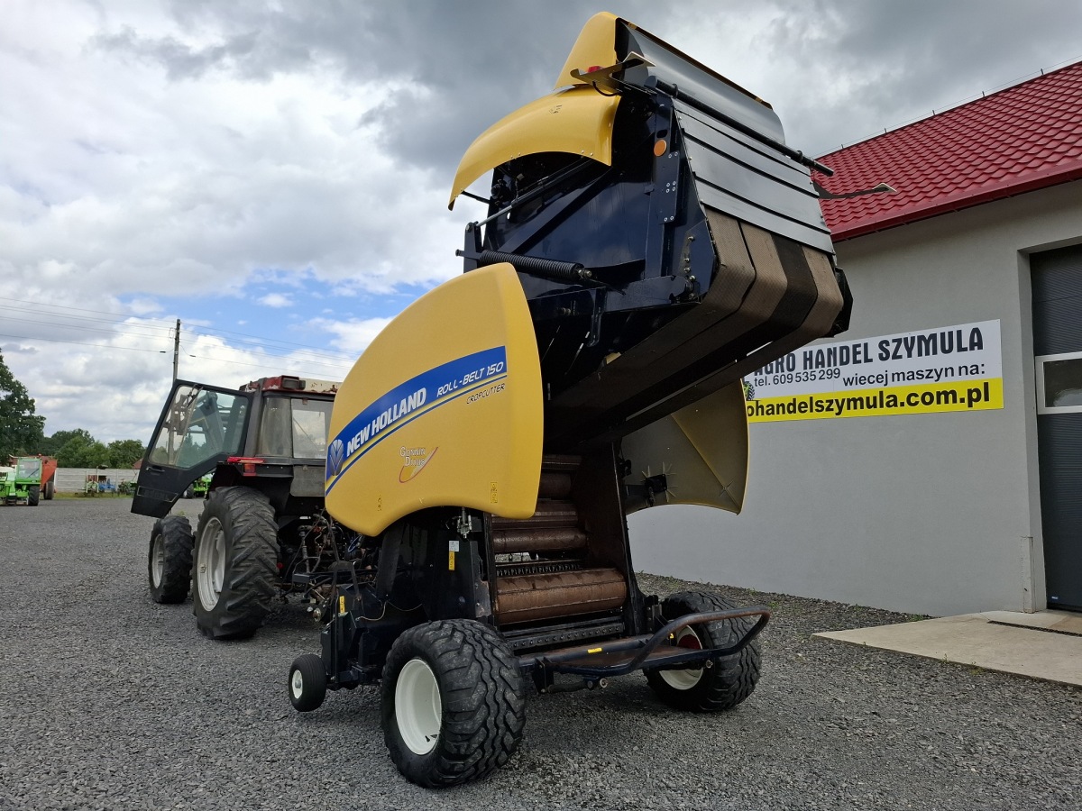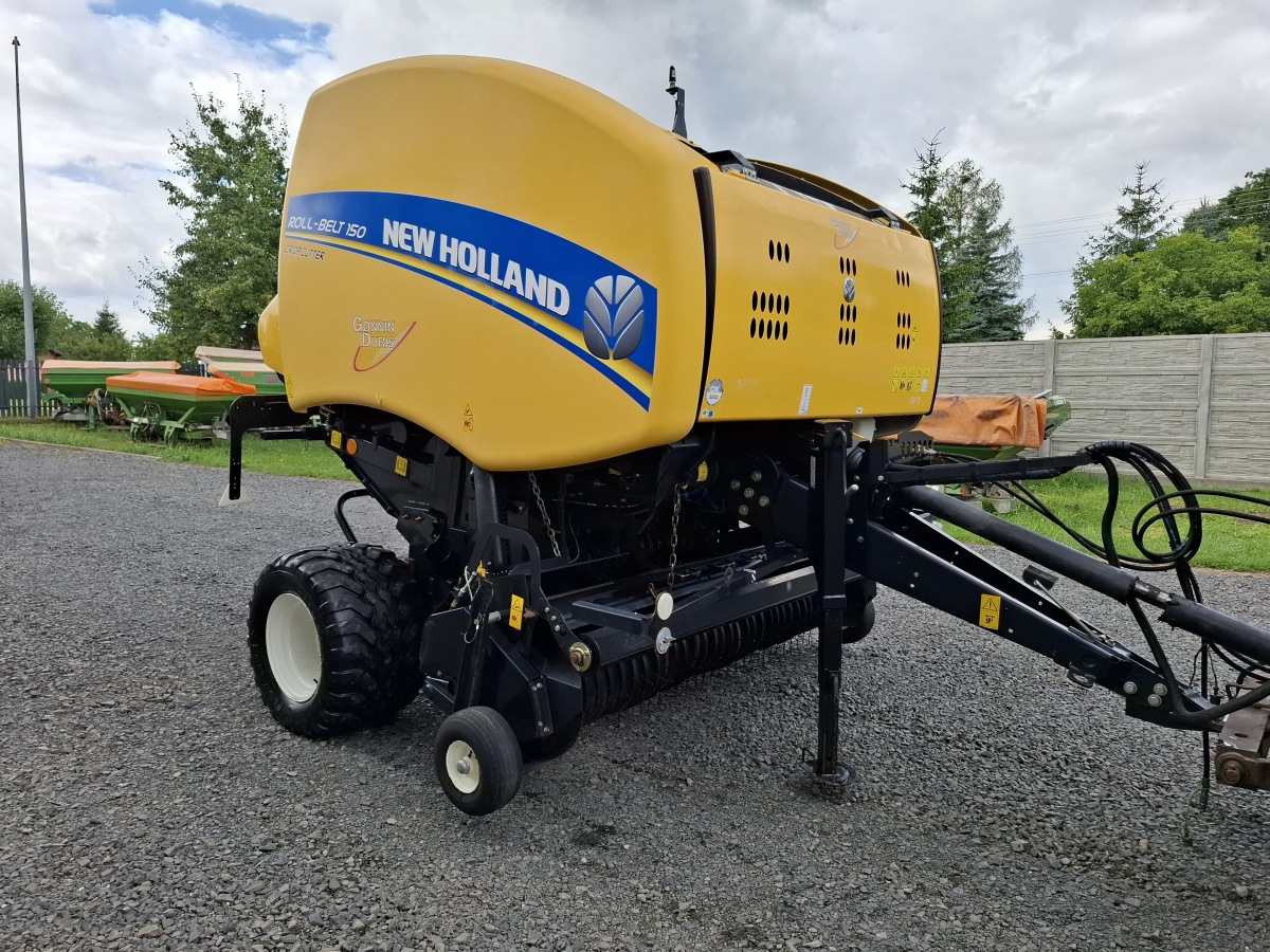 Prasa rolująca NEW HOLLAND ROLBELT 150 CROPCUTTER, 2016 r, rotor + noże, owijanie na siatkę, 21200 balotów, opuszczana podłoga pod rotorem, rolka dogniatająca przed podbieraczem, szerokie koła 480/45 R17, szeroki podbieracz, robi baloty o szer 120 cm i o średnicy od 80 do 150 cm, idealna do sianokiszonki 120x120 cm, centralne smarowanie, wałek i sterownik z kablami w komplecie, wyrzutnik balotów,