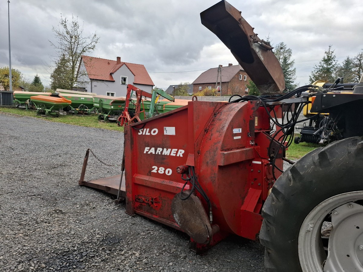 ŚCIELARKA zawieszana SILOFARMER 280 , 2 m3, 2000 r, ścielarka do słomy, może też służyć do podawania karmy dla bydła, bardzo uniwersalne maszyna. Może być ładowana od góry albo od tyłu. rura wysypowa OBROTOWA regulowana, Posiada wał- frez do rozdrabniania BALOTÓW SIANOKISZONKI. Służy do ścielenia słomą na ok 12m. Sterowanie z kabiny ciągnika. Wałek przekaźnika ze sprzęgłem. Kompletna sprawna i działająca maszyna.